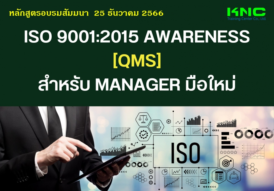 หลักสูตร "ISO 9001:2015 [QMS] AwarenessสำหรับManagerมือใหม่" ได้รวบรวมเนื้อหาสาระสำคัญทั้งข้อกำหนดและแนวทางปฏิบัติจริงที่บุคลากรระดับผู้จัดการ จะต้องรับรู้และสามารถนำไปปฏิบัติให้เกิดประสิทธิภาพได้ดีเยี่ยม สามารถจัดทำเอกสารให้สอดคล้องกับการปฏิบัติจริง ยกระดับการบริหารกระบวนการให้อยู่ในเกณฑ์มาตรฐานสากล ตามข้อกำหนดของระบบการบริหารคุณภาพ ISO 9001:2015 อีกด้วย