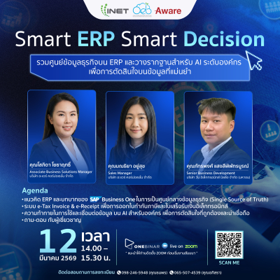 เรียนรู้การรวมศูนย์ข้อมูลบน ERP วางรากฐานสู่ AI พร้อมแนวทางการใช้ SAP Business One และ e-Tax เพื่อขับเคลื่อนธุรกิจอย่างมั่นใจ