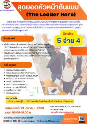 ·      เรียนรู้เทคนิค วิธีเสริมสร้างสมรรถนะของหัวหน้างานที่สำคัญในการปรับปรุงตนเองให้มีประสิทธิผลต่อการบริหารจัดการงานและลูกน้องหรือทีมงาน