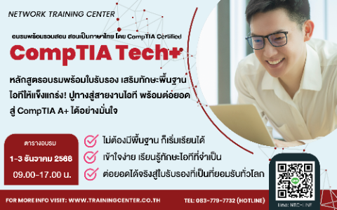 เข้าใจเทคโนโลยีพื้นฐานได้ใน 3 วัน ไม่ว่าคุณจะเริ่มต้นในสาย IT หรือต้องการอัปเกรดทักษะ IT ให้เชี่ยวชาญมากขึ้น CompTIA Tech+ ช่วยให้คุณก้าวข้ามข้อจำกัดทางเทคโนโลยี และต่อยอดความรู้ได้ทันทีหลังจบหลักสูตร