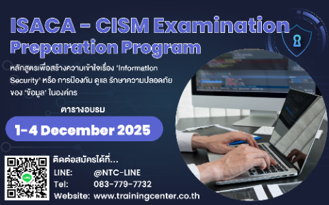 หลักสูตรนี้ออกแบบเพื่อเตรียมสอบ CISM (Certified Information Security Manager) มาตรฐานระดับโลกจาก ISACA ที่ยืนยันความสามารถในการจัดการและควบคุมระบบความปลอดภัยสารสนเทศได้อย่างมืออาชีพ