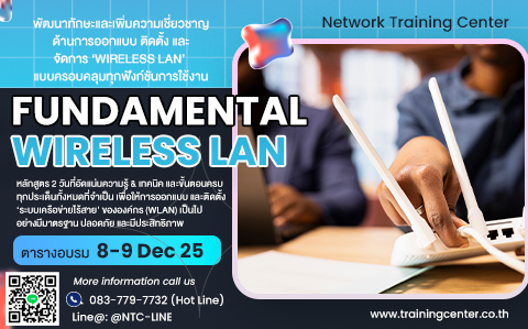 Fundamental Wireless LAN จะพาคุณเข้าใจทุกเรื่องของ “เครือข่ายไร้สาย” ตั้งแต่พื้นฐานจนใช้งานได้จริง เรียนรู้ตั้งแต่หลักการทำงานของคลื่นสัญญาณ เสาอากาศ การติดตั้งอุปกรณ์ ไปจนถึงเทคนิคดูแลระบบและแก้ปัญหาเบื้องต้น
