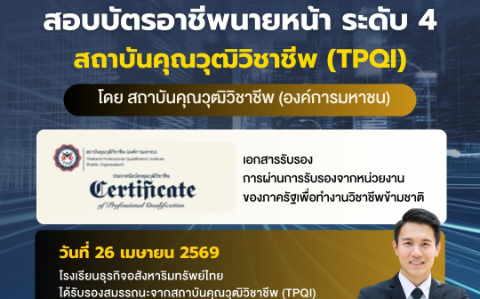 รับสมัครเข้ารับการประเมินสมรรถนะบุคคล ตามมาตรฐานอาชีพ สาขานายหน้าอสังหาริมทรัพย์ ระดับ 4 โดย สถาบันคุณวุฒิวิชาชีพ (องค์การมหาชน)