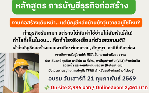 ผู้ที่ต้องการทำความเข้าใจในธุกิจก่อสร้าง ด้านบัญชีและภาษี จัดระบบเอกสาร ทะเบียน การควบคุม โครงการต่างๆ