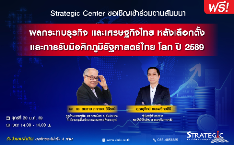 Strategic Center ขอเชิญเข้าร่วม สัมมนา ผลกระทบธุรกิจและเศรษฐกิจไทยหลังเลือกตั้งพร้อมรับมือภูมิรัฐศาสตร์โลกปี 69 เพื่อวิเคราะห์ทิศทางเศรษฐกิจและธุรกิจไทยหลังการเลือกตั้งท่ามกลางความเปลี่ยนแปลงของภูมิรัฐศาสตร์โลก